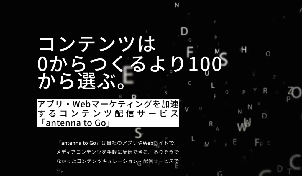 当社が新たにローンチしたサービス「antenna to Go」は、その名のとおり当社が2012年以来運営してまいりましたキュレーションメディア「antenna」を母体とした法人向けコンテンツ配信プラットフォームです。「antenna to Go」を導入した法人クライアントは、当社提携メディアの魅力的なコンテンツの中から自由に選んだものを、サイト内に画像リンクの形で表示することができます。これまでantennaがアプリやWEB版のサービス内でコンテンツを掲載・配信していたのに対し、antenna to Goでは世の中に存在するさまざまなWEBサイトに設置されたantenna to Go専用の表示枠がコンテンツとユーザー(一般生活者)との接点となります。従来単一のサービス内で完結していたコンテンツ配信の仕組みを広く解放していくことで、これまで以上に多くのコンテンツを、それぞれのコンテンツに合うユーザーへ届けてゆくことが可能になります。