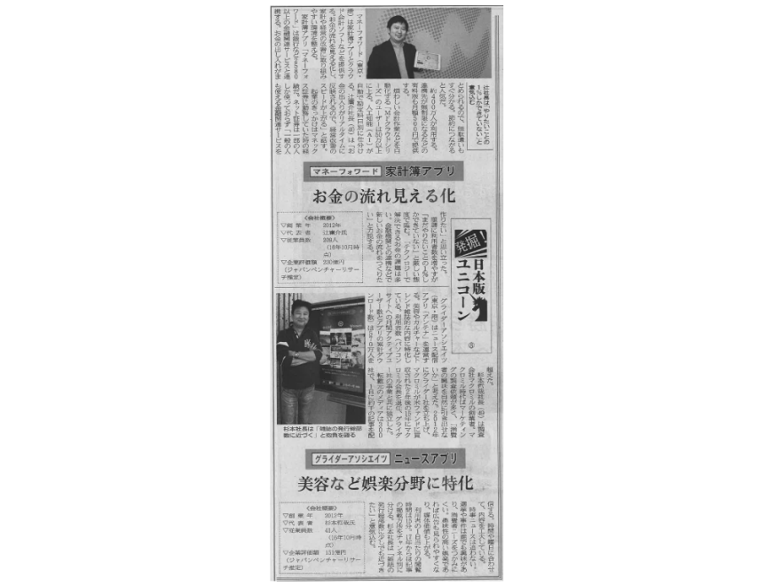 2016年11月1日(火)の日本経済新聞 日刊「発掘!日本版ユニコーン」に弊社杉本のインタビューが掲載されました。