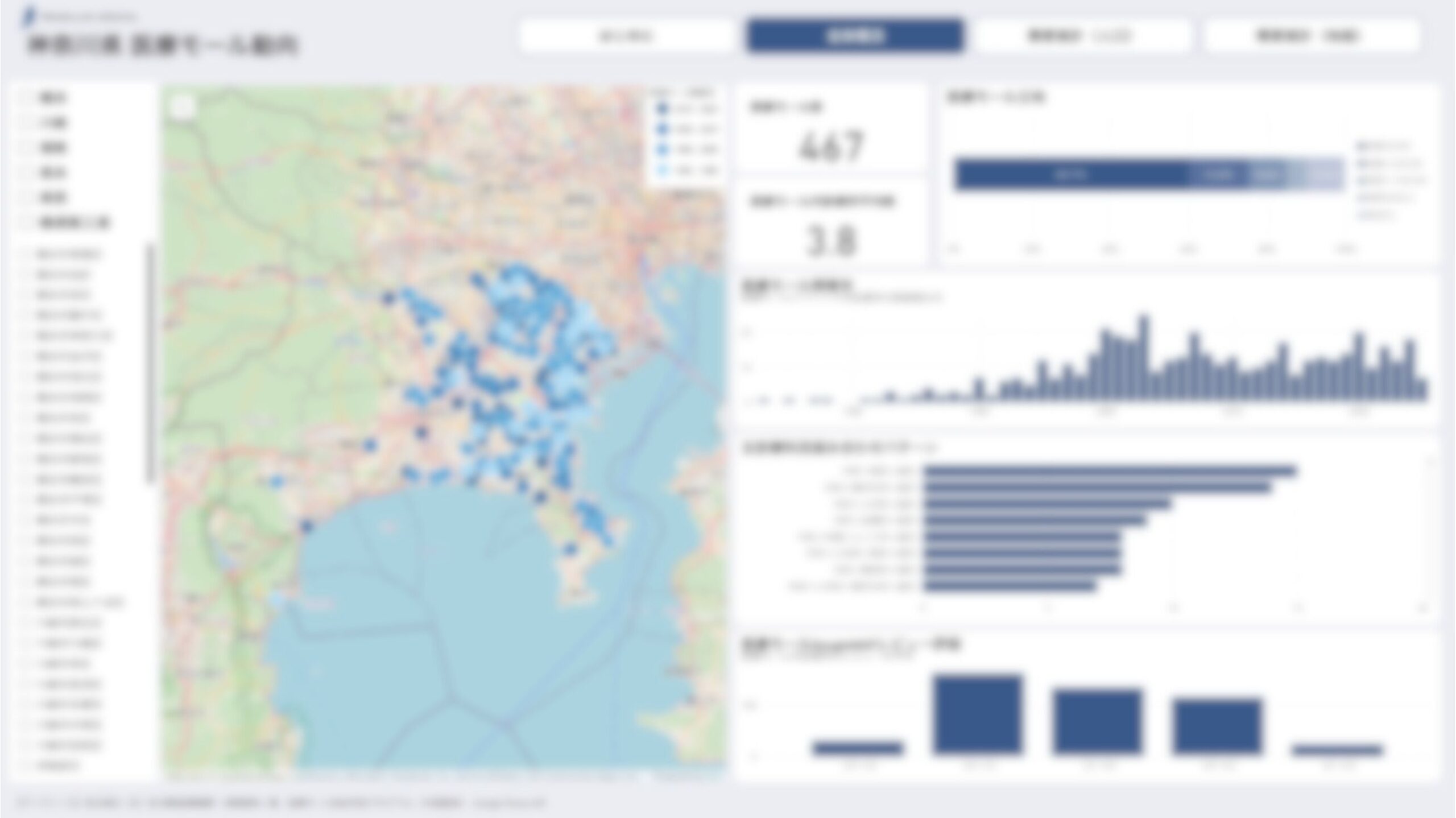 神奈川県における医療モール軒数、入居診療所数、立地、開業年、診療科構成、Google口コミ評価などの基礎データを、2025年11月時点の最新データに更新しました。刻々と変化する神奈川県内の医療モール市場動向を、よりリアルタイムに近い状態で反映しています。