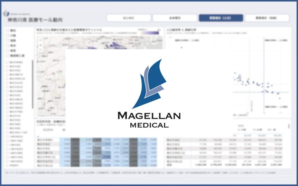 医療モール経営の羅針盤を目指す株式会社マゼランメディカル(本社:東京都品川区、代表取締役社長:杉本哲哉)は、現在β版として無料公開中の「医療モール市場動向ダッシュボード(神奈川県版)」において、大幅な機能アップデートを実施いたしました。今回の機能拡張では、新たに「需要推計(人口・地価)」の分析タブを追加。さらに、既存の全体概況データについても最新(2025年11月時点)の数値へと更新し、より精度の高い意思決定を支援するツールへと進化させました。