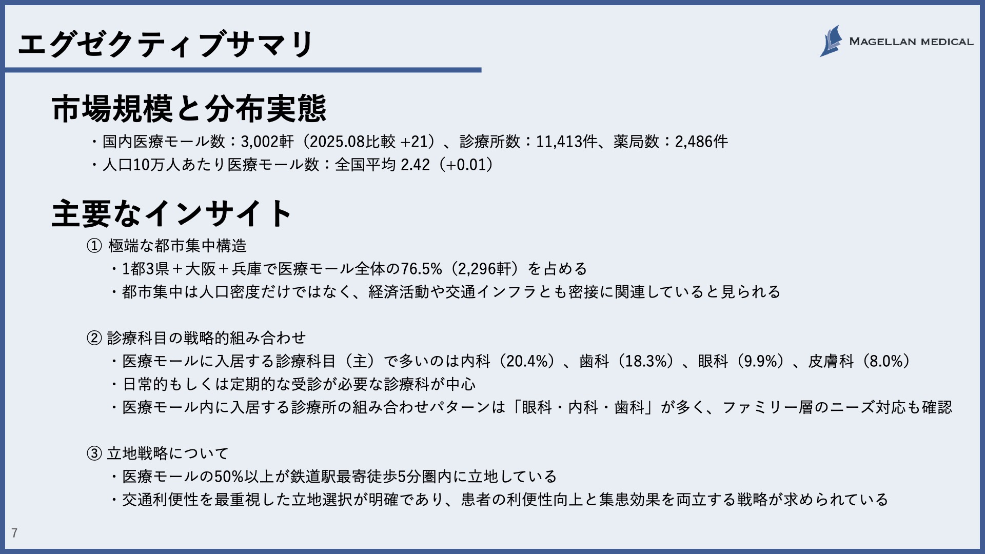 ※本レポートにおける医療モールとは、3つ以上の診療所が同一建物または近接施設に集積する集合体を指します。