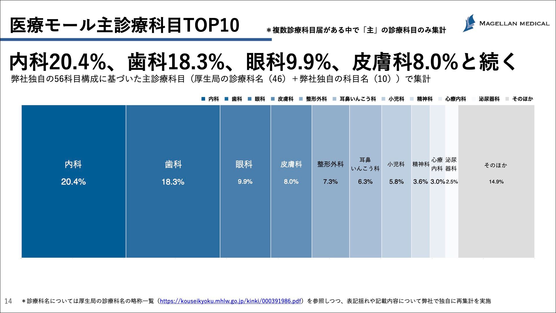 ポイント②:診療科目の傾向は内科、歯科、眼科が中心